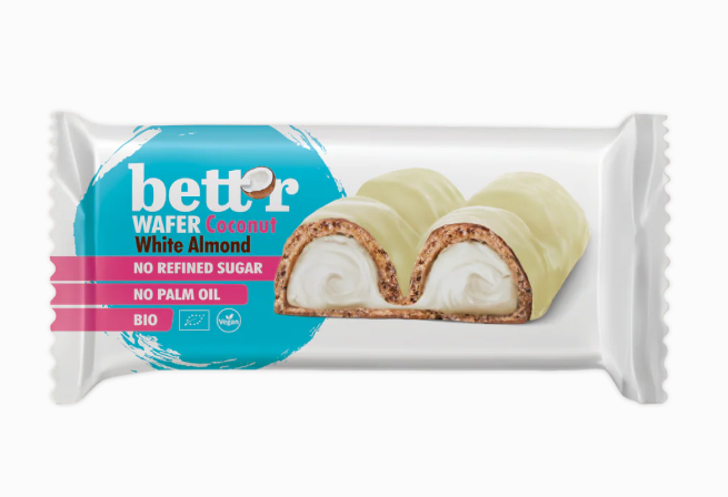 Krem kokosowy* 23%, prażone blanszowane MIGDAŁY* 21%, proszek z agawy*, masło kakaowe*, mąka PSZENNA*, cukier kokosowy* 9,3%, mąka kokosowa* 7%, masło shea*, emulgator: lecytyna słonecznikowa*, olej słonecznikowy*, proszek kakaowy*, sól, substancja spulchniająca: wodorowęglan sodu.