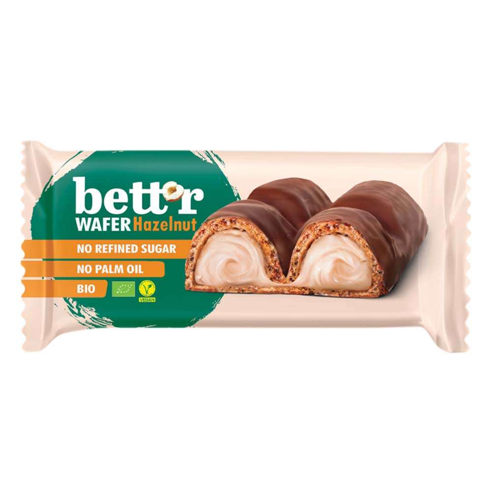 Delikatny, chrupiący wafel połączony z aksamitnym kremem z orzechów laskowych – to właśnie Bett’r Wafer Hazelnut BIO. W 100% wegański, bez oleju palmowego i sztucznych dodatków, przygotowany