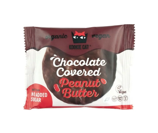 BIO Ciasteczko czekoladowe z masłem orzechowym od KOOKI CAT to wyjątkowa przekąska, która łączy przyjemność smaku z prostym składem. Ciastko otulone jest intensywną czekoladą bez dodatku cukru, a w środku kryje się delikatna nuta orzeszków ziemnych, co daje harmonijną, delikatnie słodką kompozycję.