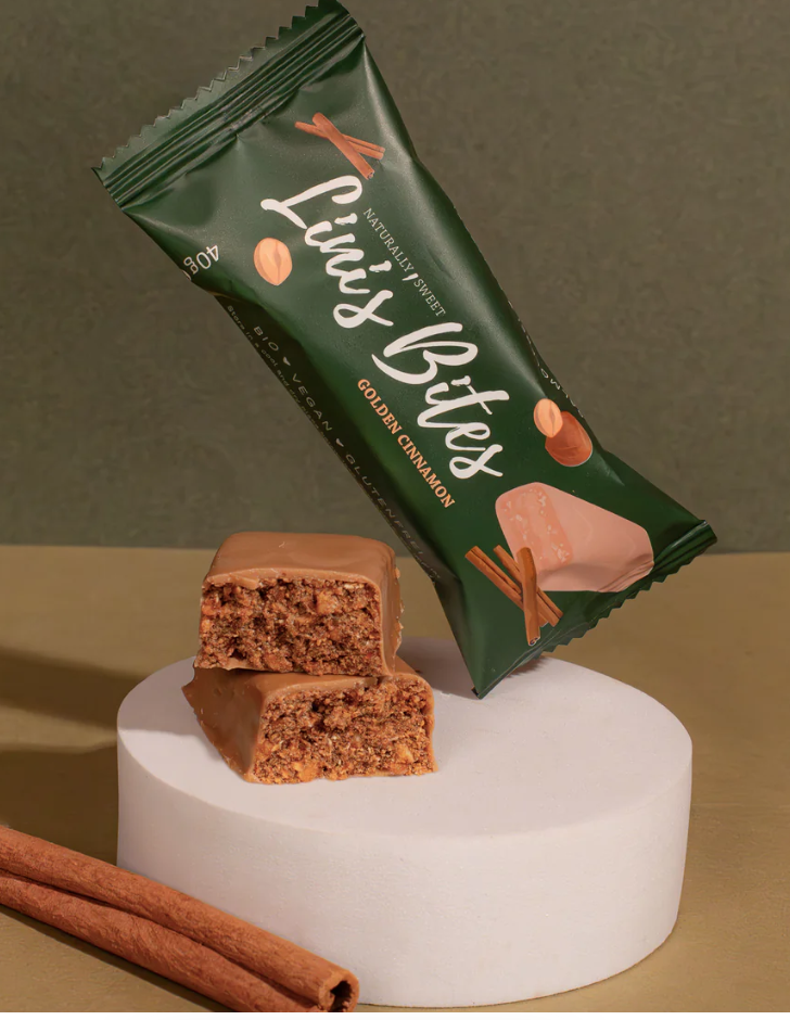 płatki owsiane bezglutenowe*, syrop daktylowy*, przygotowanie z masła kakaowego* (masło kakaowe*, cukier z kwiatów kokosa*, mleko kokosowe* (pasta kokosowa*, mleko kokosowe* (24% tłuszczu), mąka kokosowa*)) (15%), orzechy laskowe*, masło kakaowe*, cynamon cejloński* (2,3%), sól morska.