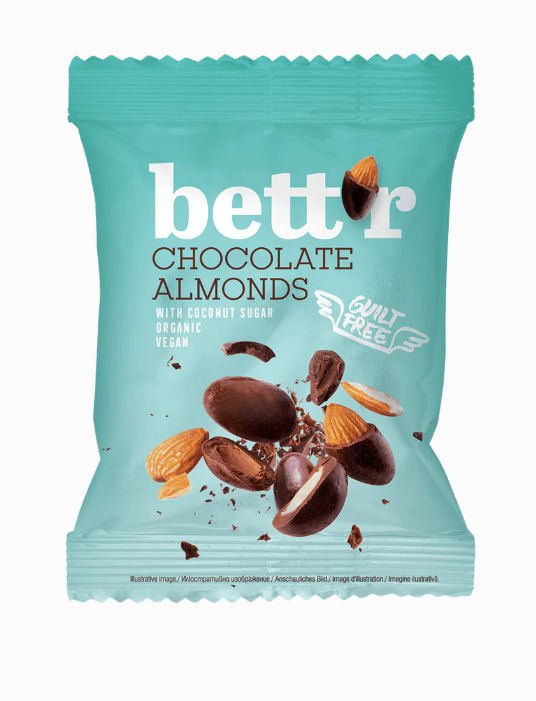 Migdały w czekoladzie Bett’r to klasyka w wersji premium, w środku znajdziesz chrupiące migdały, które zostały oblane warstwą intensywnej wegańskiej czekolady