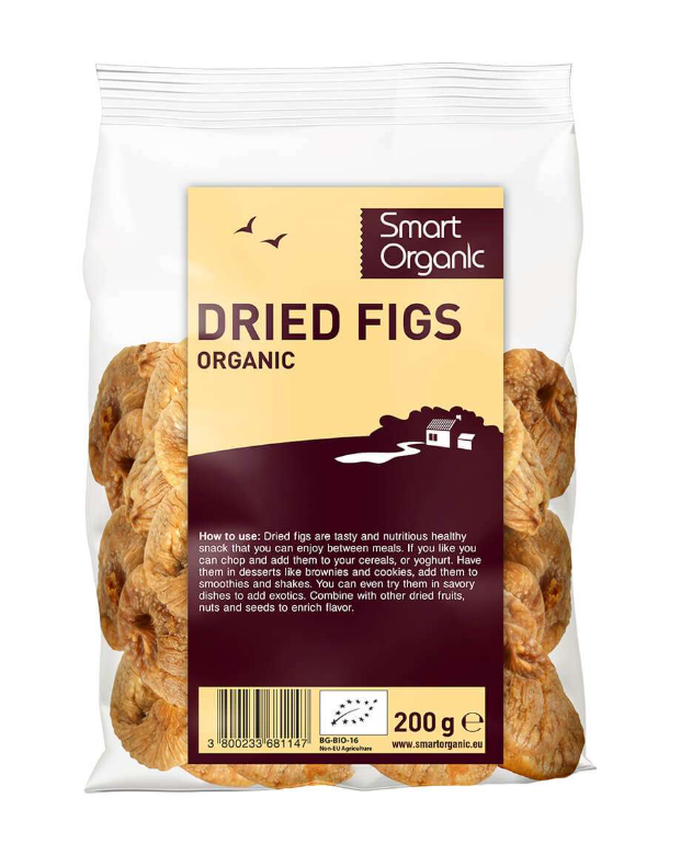 Suszone figi  od Smart Organic to naturalna, miękka przekąska pełna słodyczy. Produkt w certyfikowanej wersji BIO, bez dodatku cukru i konserwantów. Wegański, gluten-free — idealny jako zdrowa alternatywa słodyczy.