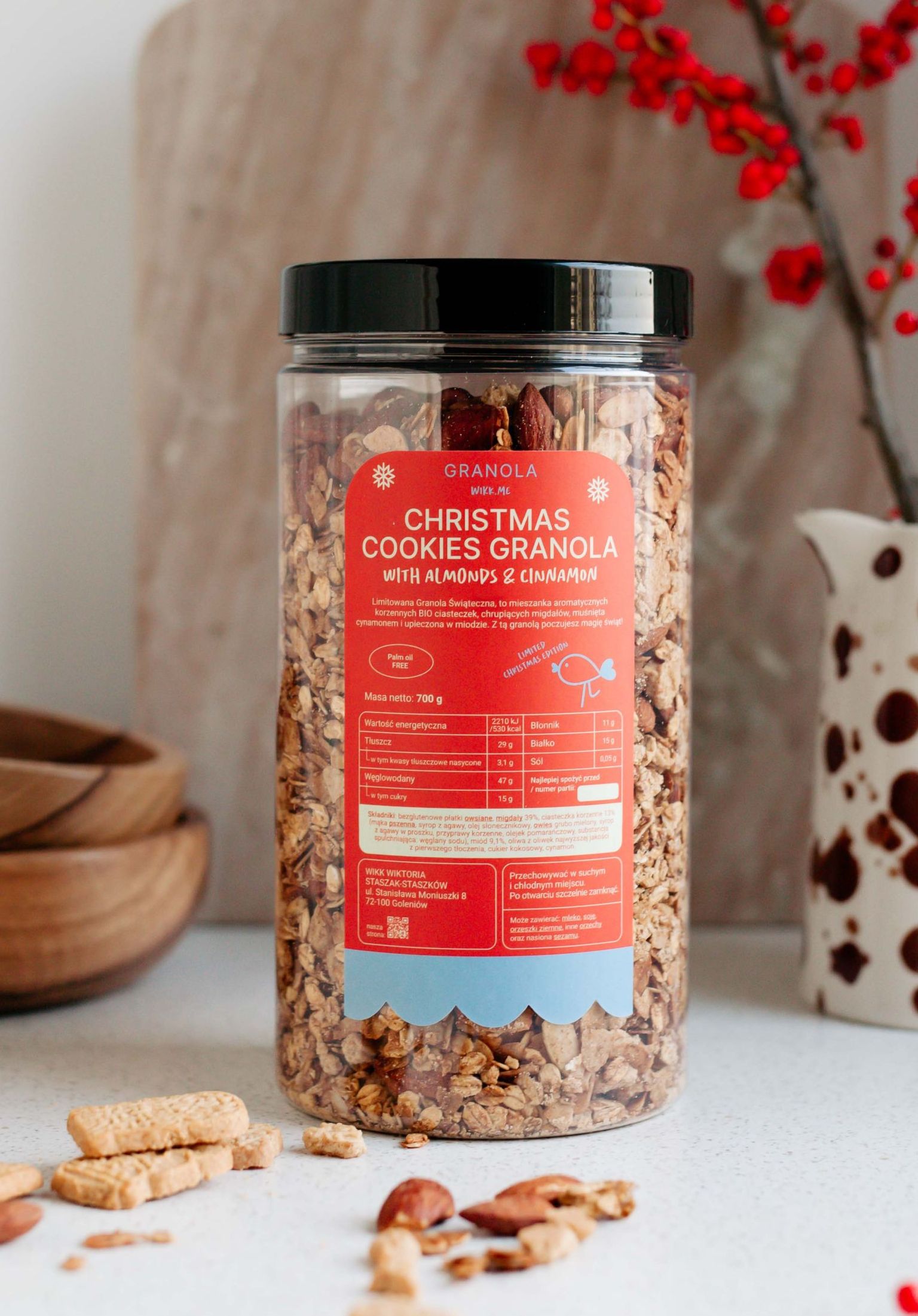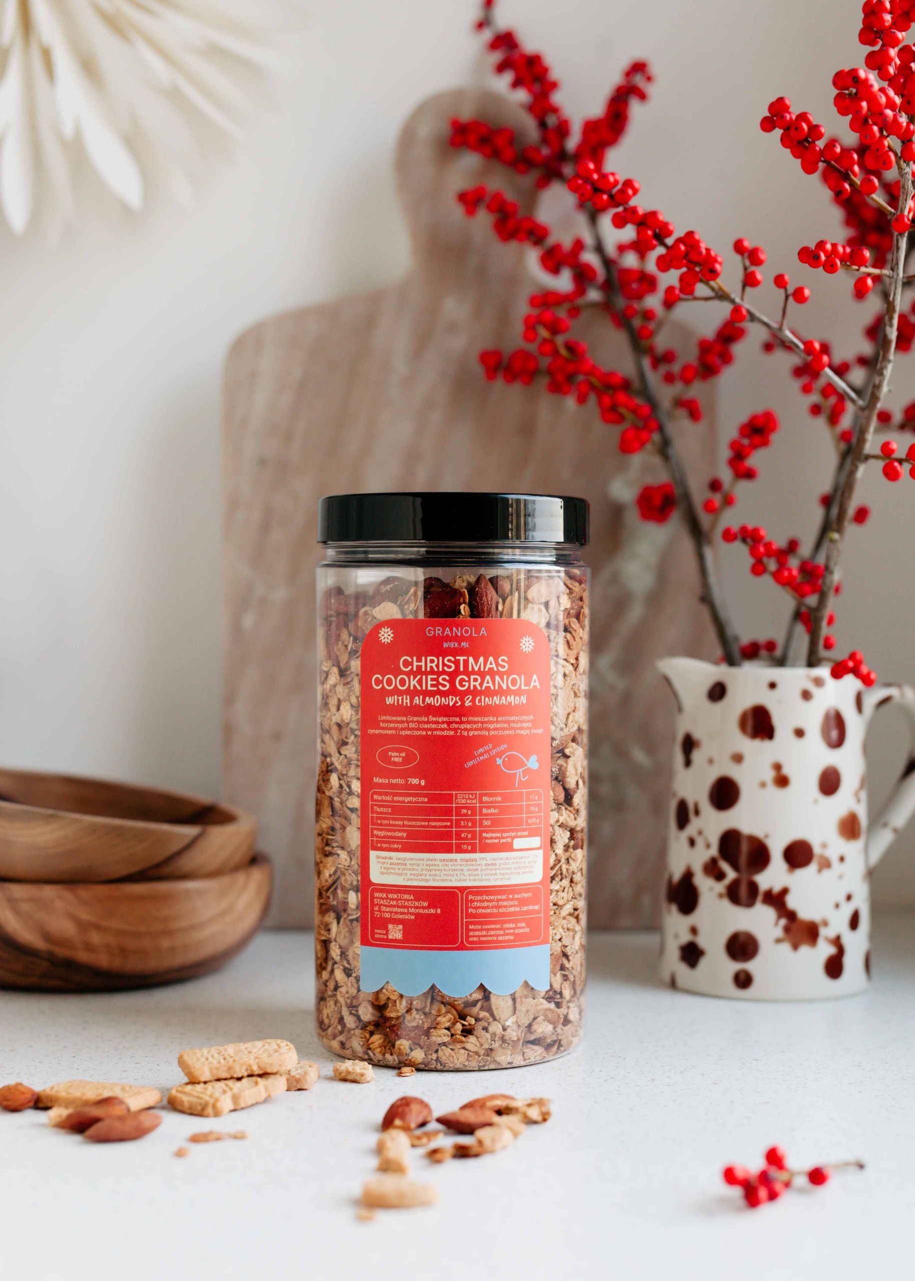 Aromatyczna, chrupiąca, pełna wysokiej jakości składników Christmas Cookies Granola jest dostępna w naszym sklepie tylko w do końca roku. Pasuje do tego czasu idealnie – jest jak jedno wielkie korzenne ciasteczko, jak święta zaklęte w granoli.