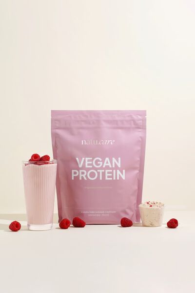 Wsparcie dla Twoich mięśni w pysznej, roślinnej formie – wegańskie białko o smaku białej czekolady z maliną.